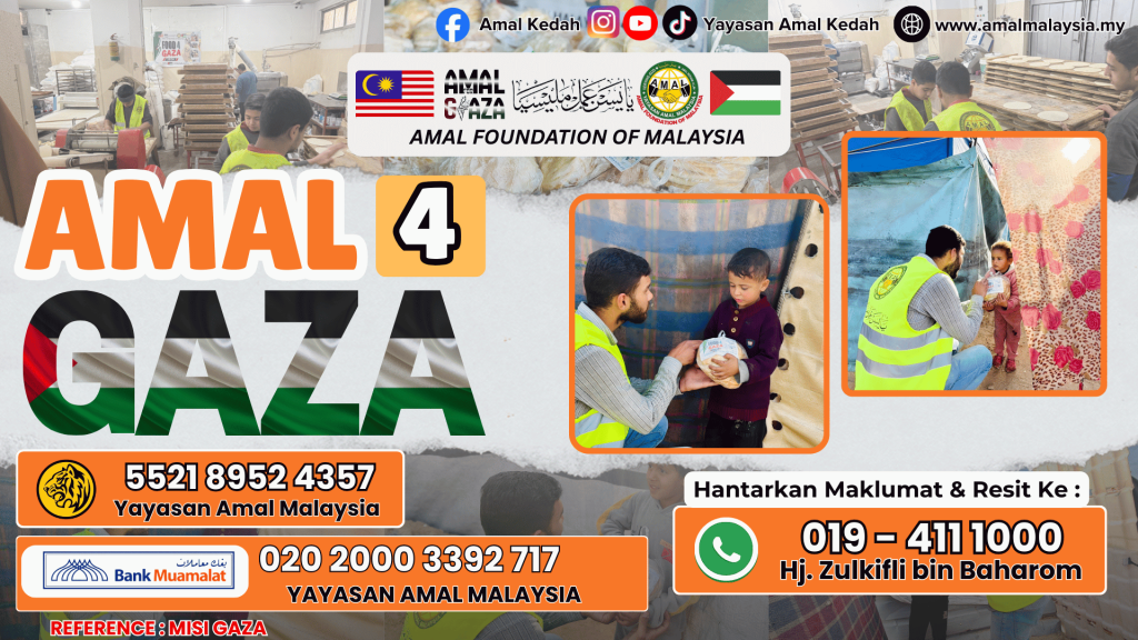 Yayasan Amal Malaysia membuka ruang dan peluang kepada rakyat Malaysia supaya terus menyumbang untuk saudara-saudara kita di Gaza yang masih memerlukan bantuan demi meneruskan kehidupan mereka.